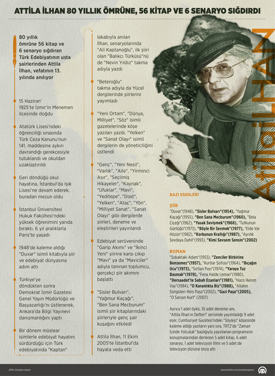 Attila İlhan 80 yıllık ömrüne, 56 kitap ve 6 senaryo sığdırdı