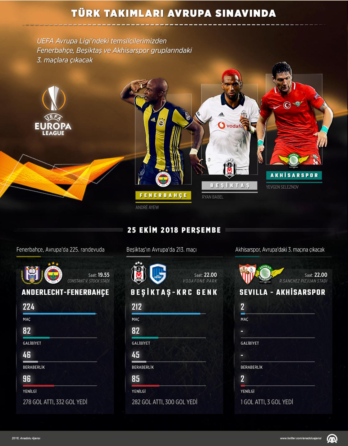 Türk takımları Fenerbahçe, Beşiktaş ve Akhisarspor, UEFA Avrupa Ligi gruplarındaki üçüncü maçlarını yarın oynayacak. ( Kemal Delikmen - Anadolu Ajansı )
