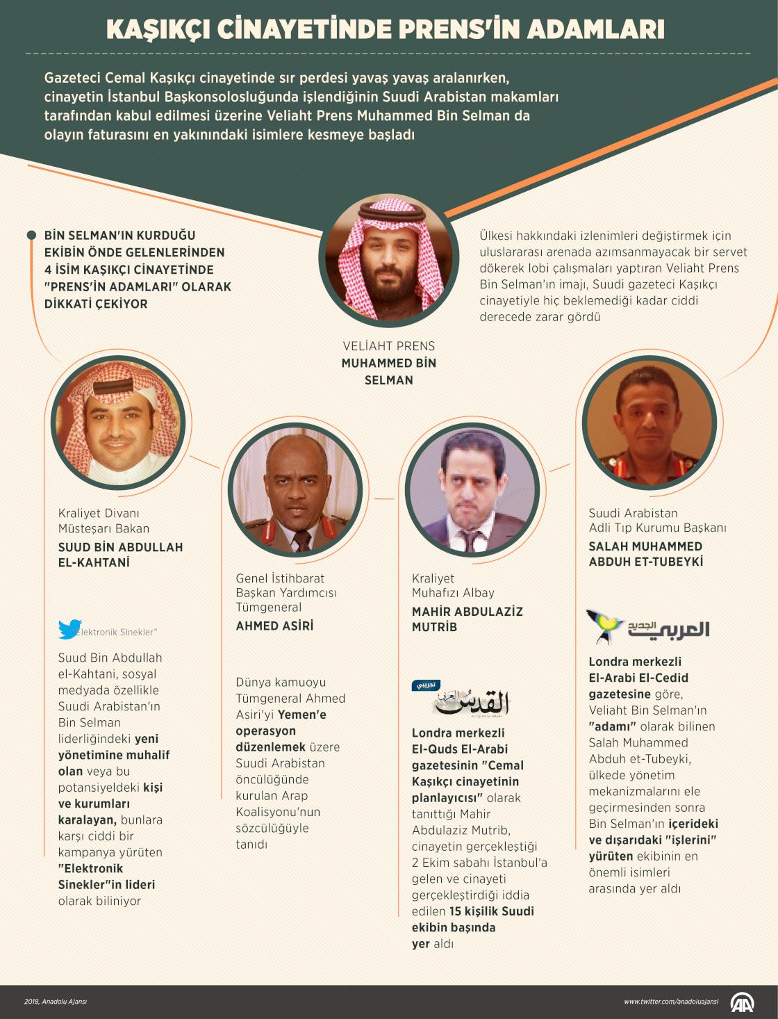 Gazeteci Cemal Kaşıkçı cinayetinde sır perdesi yavaş yavaş aralanırken, cinayetin İstanbul Başkonsolosluğunda işlendiğinin Suudi Arabistan makamları tarafından kabul edilmesi üzerine Veliaht Prens Muhammed Bin Selman da olayın faturasını en yakınındaki isimlere kesmeye başladı.