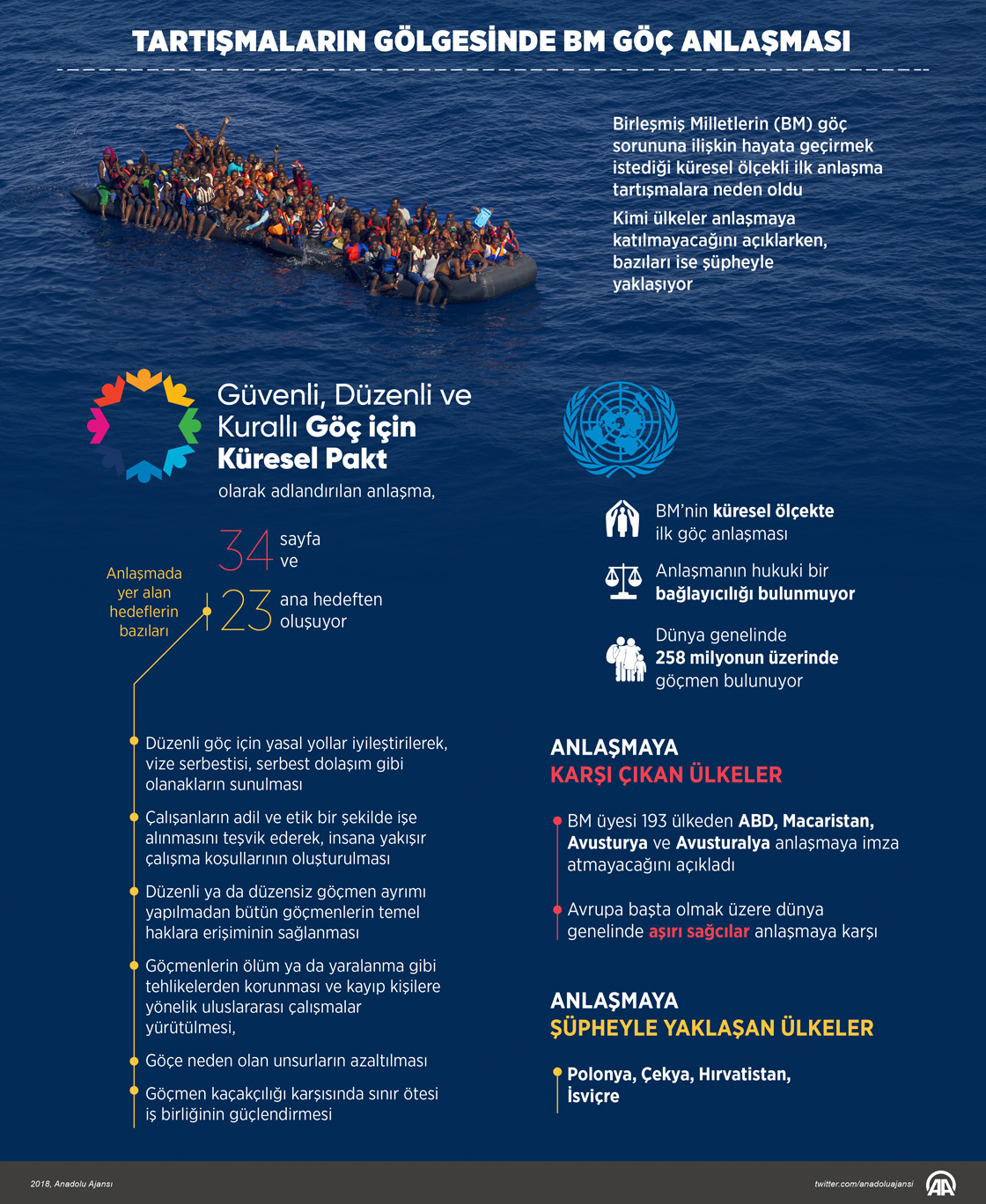 Birleşmiş Milletlerin (BM) göç sorununa ilişkin hayata geçirmek istediği küresel ölçekli ilk anlaşma tartışmalara neden oldu. Kimi ülkeler anlaşmaya katılmayacağını açıklarken, bazıları ise şüpheyle yaklaşıyor. ( Murat Usubaliev - Anadolu Ajansı )