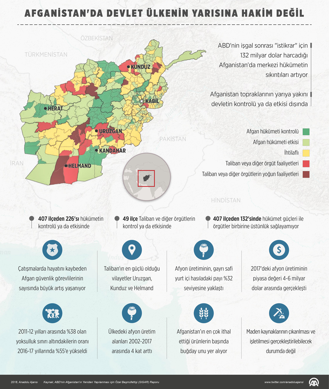 Afganistan'da, ABD'nin 2001 yılındaki işgalinin ardından yeniden yapılandırılan merkezi yönetimin ülke genelindeki hakimiyeti azalırken afyon üretiminde hızlı bir artış meydana geldi. ( Kemal Delikmen - Anadolu Ajansı )