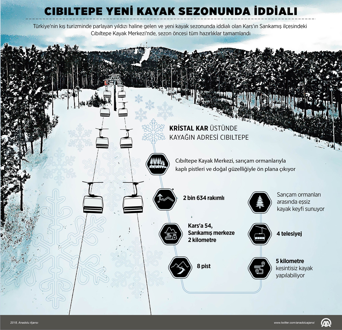 Türkiye'nin kış turizminde parlayan yıldızı haline gelen ve Kafkasların en iyi kayak merkezi olmayı hedefleyen Kars'ın Sarıkamış ilçesindeki Cıbıltepe'de, yeni sezon öncesi yerli ve yabancı turistlerin ağırlanması için tüm hazırlıklar tamamlandı. ( Gözde Gültekinler - Anadolu Ajansı )27 Kasım 2018•Güncelleme: 27 Kasım 2018