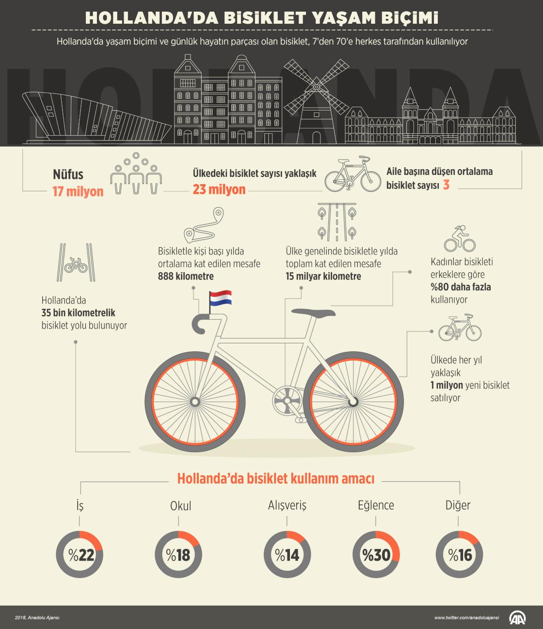 "Bisikletler diyarı" Hollanda'da, günlük hayatın parçası bisiklet, 7'den 70'e herkes tarafından kullanılıyor. ( Gözde Gültekinler - Anadolu Ajansı )