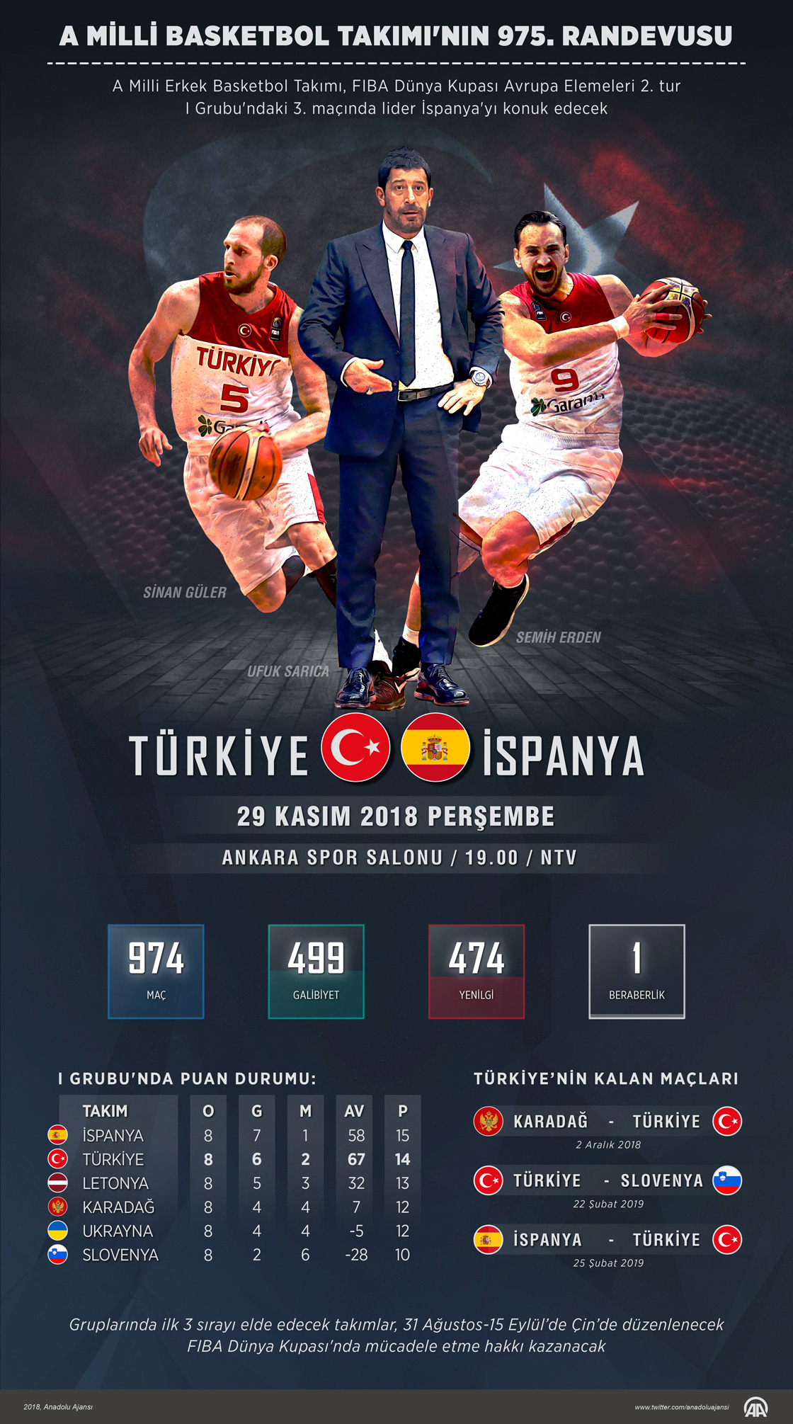 A Milli Erkek Basketbol Takımı, FIBA Dünya Kupası Avrupa Elemeleri 2. tur I Grubu'ndaki 3. maçında yarın Ankara'da lider İspanya ile karşı karşıya gelecek. ( Muhammed Ali Yiğit - Anadolu Ajansı )