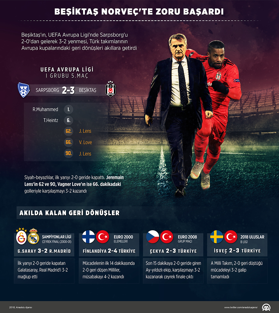 Beşiktaş'ın UEFA Avrupa Ligi I Grubu 5. haftasında Norveç'in Sarpsborg takımını 2-0 geriden gelerek 3-2 yenmesi, Türk temsilcilerinin uluslararası organizasyonlardaki geri dönüşlerini hatırlattı.