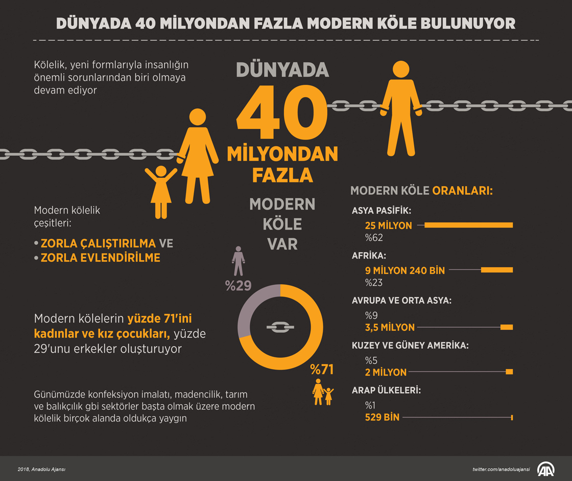 Dünyada 40 milyondan fazla modern köle bulunuyor