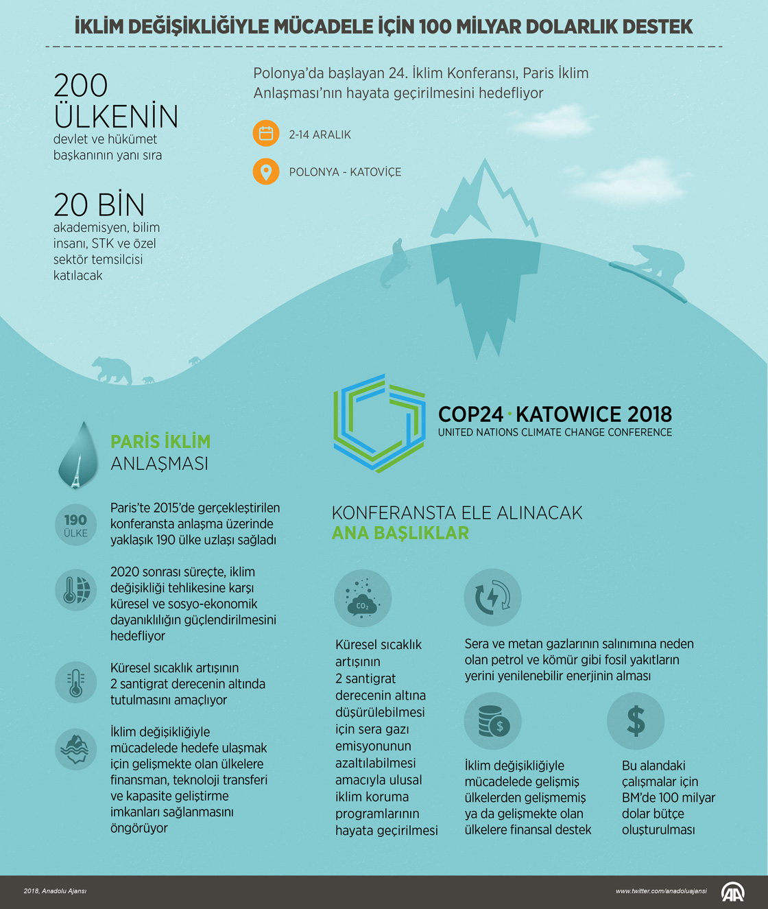 Polonya’nın Katoviçe kentinde dün başlayan 24. İklim Konferansı, Fransa’nın Paris kentinde 190’a yakın ülkenin üzerinde uzlaştığı Paris İklim Anlaşması’nın hayata geçirilmesi için atılacak somut adımları ele alacak.
