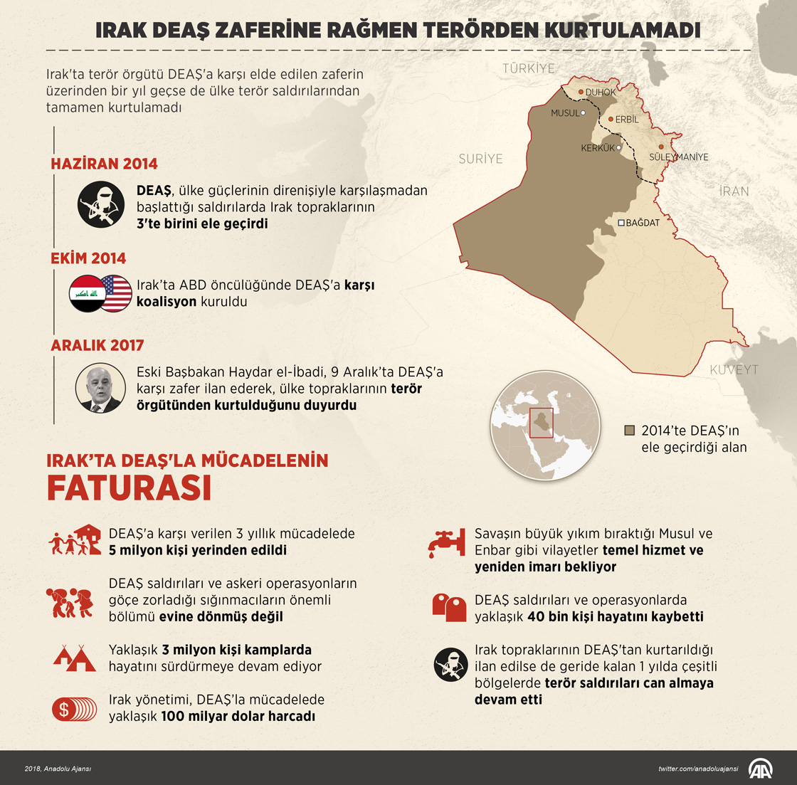 Irak'ta terör örgütü DEAŞ'a karşı elde edilen zaferin üzerinden bir yıl geçse de ülke terör saldırılarından tamamen kurtulamadı. ( Murat Usubaliev - Anadolu Ajansı )