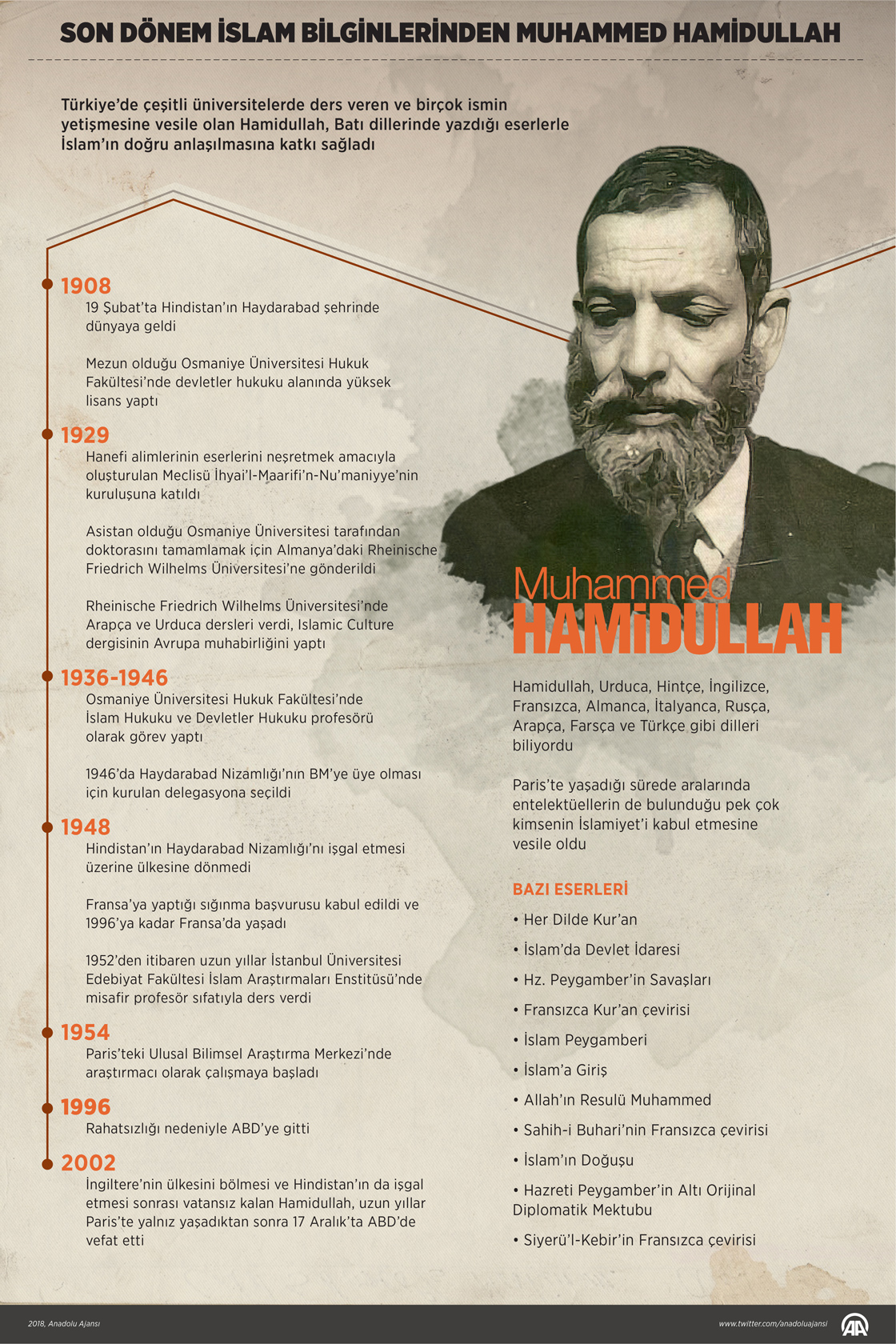 Türkiye’de çeşitli üniversitelerde ders veren ve birçok ismin yetişmesine vesile olan Hamidullah, Batı dillerinde yazdığı eserlerle İslam’ın doğru anlaşılmasına katkı sağladı.