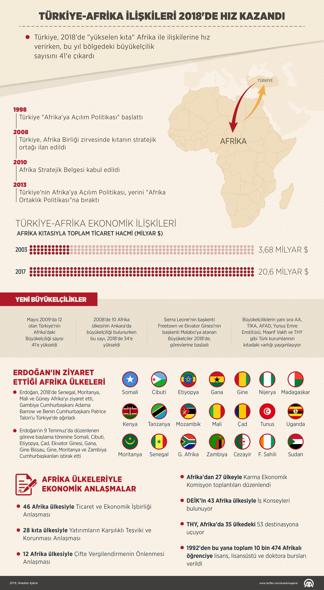 Türkiye, 2018'de "yükselen kıta" Afrika ile ilişkilerine hız verirken, bu yıl bölgedeki büyükelçilik sayısını 41'e çıkardı. ( Muhammed Ali Yiğit - Anadolu Ajansı )