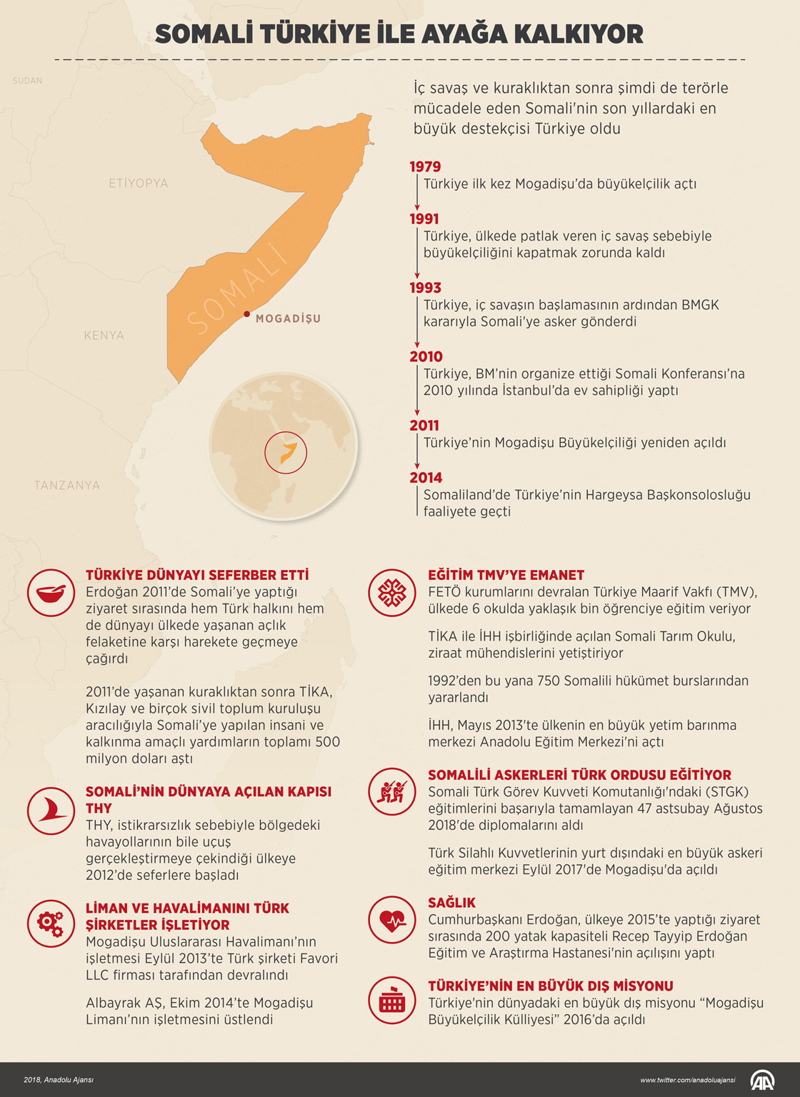 Son 30 yıldır iç savaş, kuraklık ve terör nedeniyle zor bir dönem geçiren Somali, Türkiye’nin eğitim, sağlık, kalkınma ve askeri alanlarda verdiği destekle ayağa kalkmaya başladı. ( Muhammed Ali Yiğit - Anadolu Ajansı )