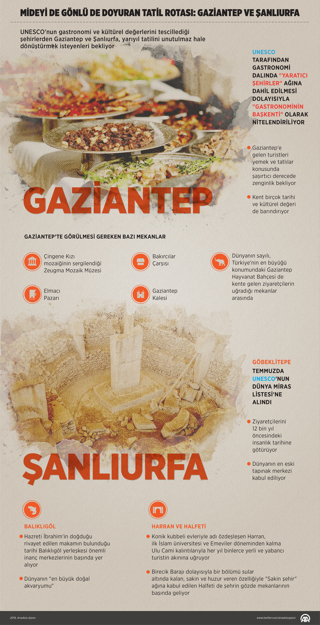 UNESCO'nun gastronomi ve kültürel değerlerini tescillediği şehirlerden Gaziantep ve Şanlıurfa, yarıyıl tatilini unutulmaz hale dönüştürmek isteyenleri bekliyor. ( Yasin Demirci - Anadolu Ajansı )