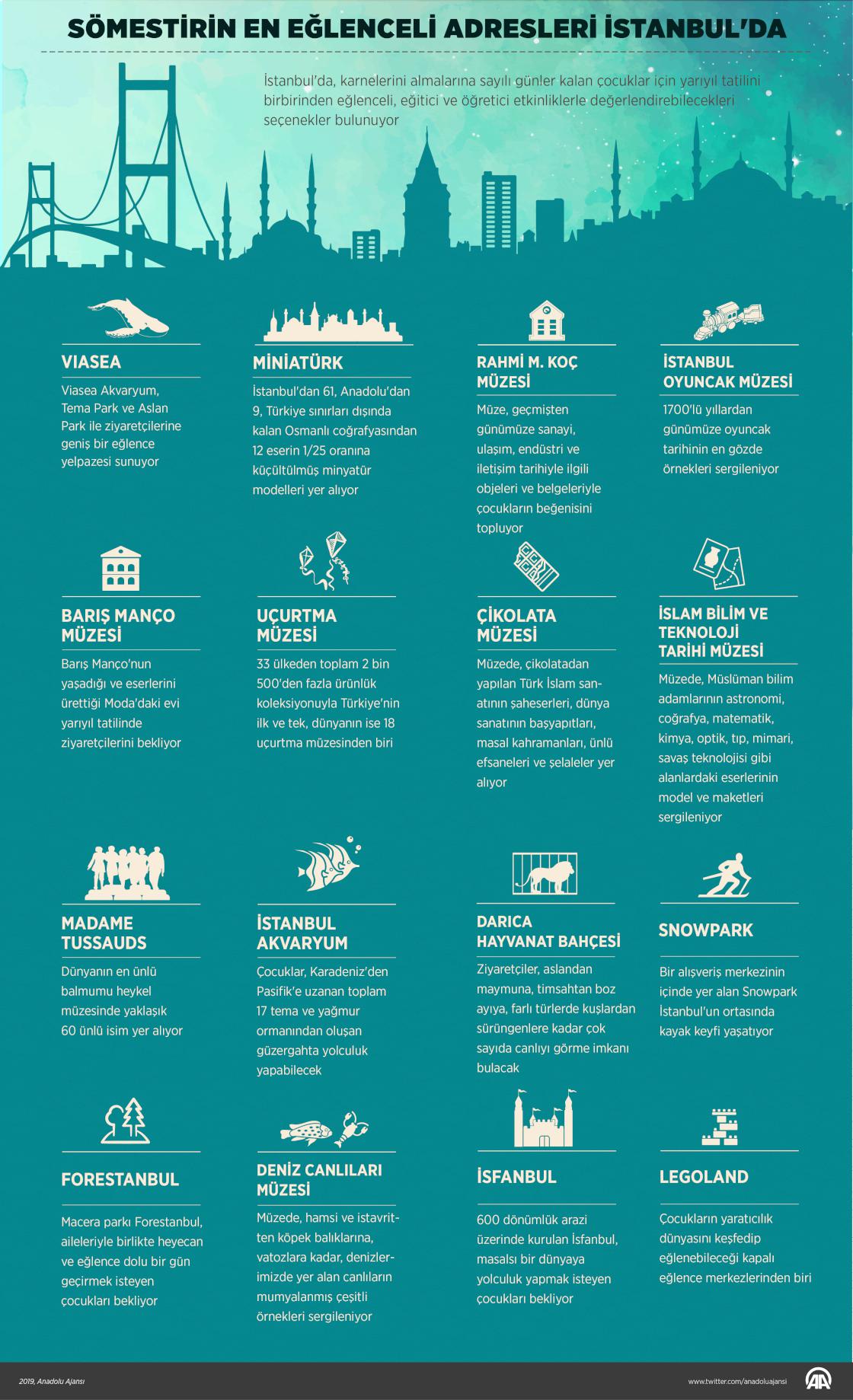İstanbul'da, karnelerini almalarına sayılı günler kalan çocuklar için yarıyıl tatilini birbirinden eğlenceli, eğitici ve öğretici etkinliklerle değerlendirebilecekleri seçenekler bulunuyor ( Gözde Gültekinler - Anadolu Ajansı )