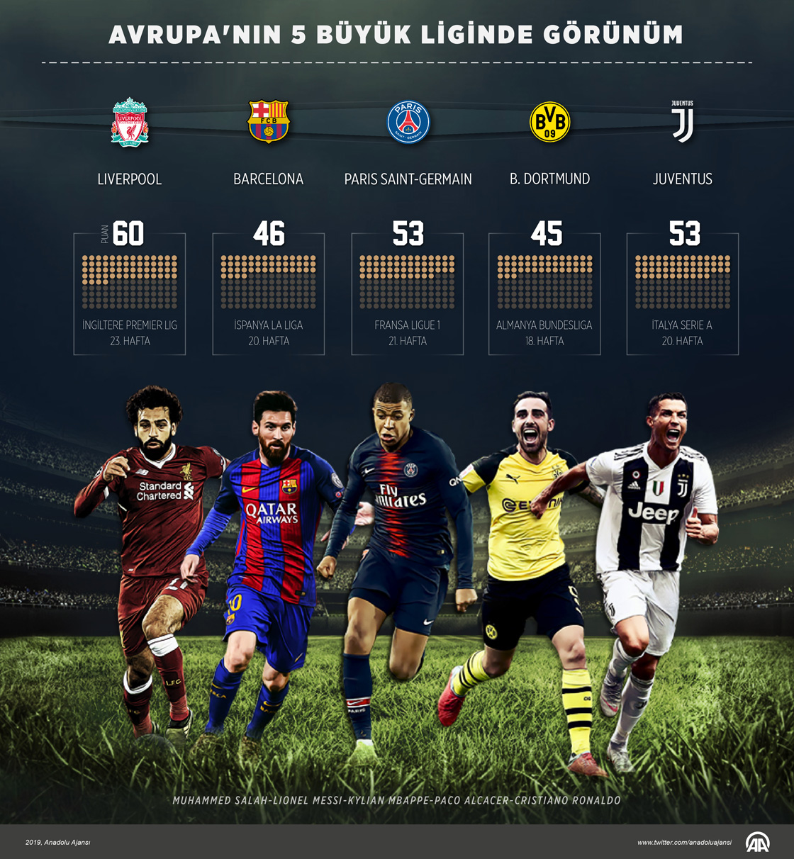 Avrupa'nın en büyük 5 futbol ligi kabul edilen İngiltere (Premier Lig), İspanya (La Liga), İtalya (Serie A), Almanya (Bundesliga) ve Fransa'daki (Ligue 1) karşılaşmalara, hafta sonu devam edildi. ( Kemal Delikmen - Anadolu Ajansı )