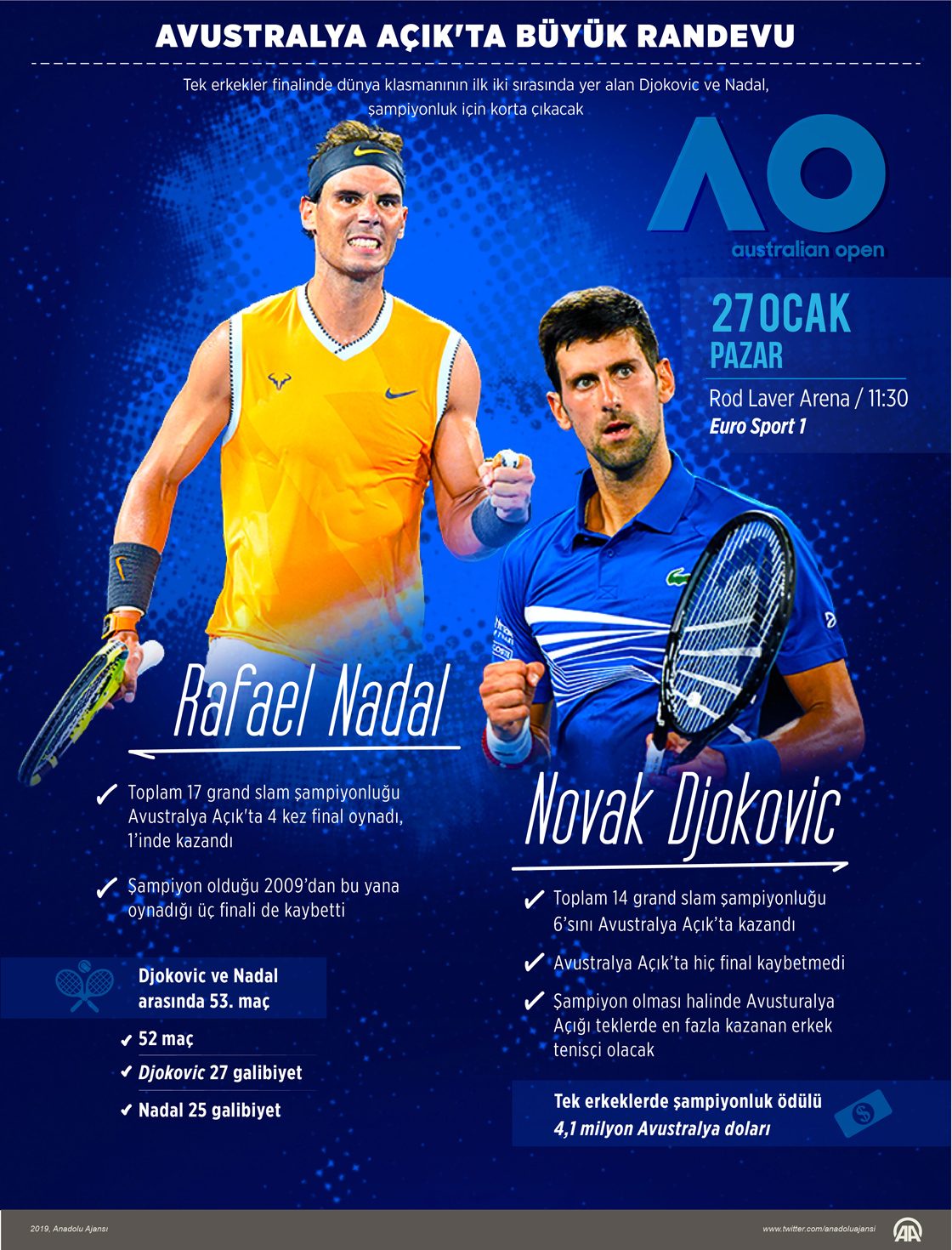 Tek erkekler finalinde dünya klasmanının ilk iki sırasında yer alan Djokovic ve Nadal, şampiyonluk için korta çıkacak. ( Gözde Gültekinler - Anadolu Ajansı )