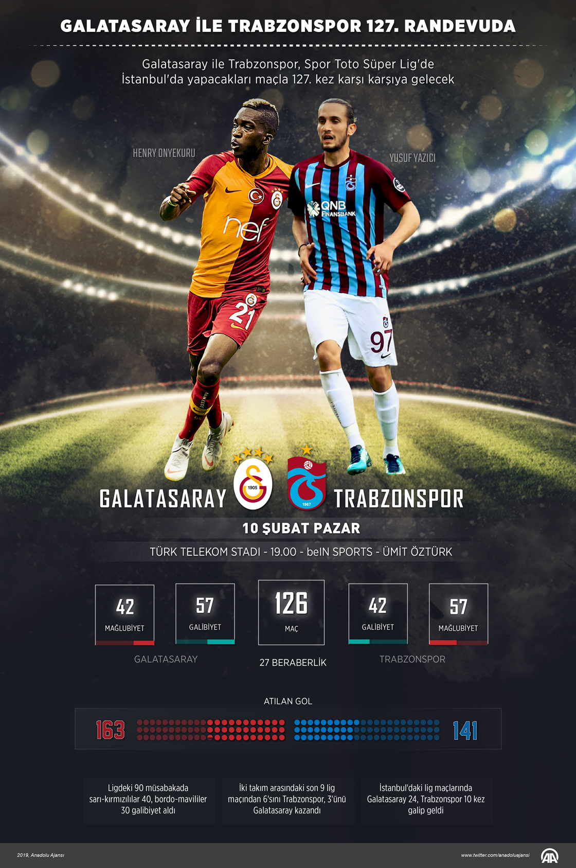 Galatasaray ile Trabzonspor, Spor Toto Süper Lig'de İstanbul'da yapacakları maçla 127. kez karşı karşıya gelecek.