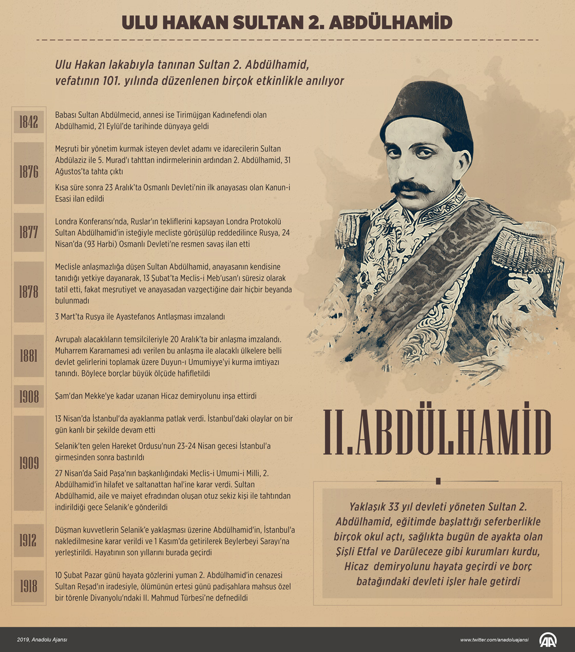 Osmanlı İmparatorluğunun önemli padişahlarından Sultan 2. Abdülhamid, vefatının 101. yılında yad ediliyor.