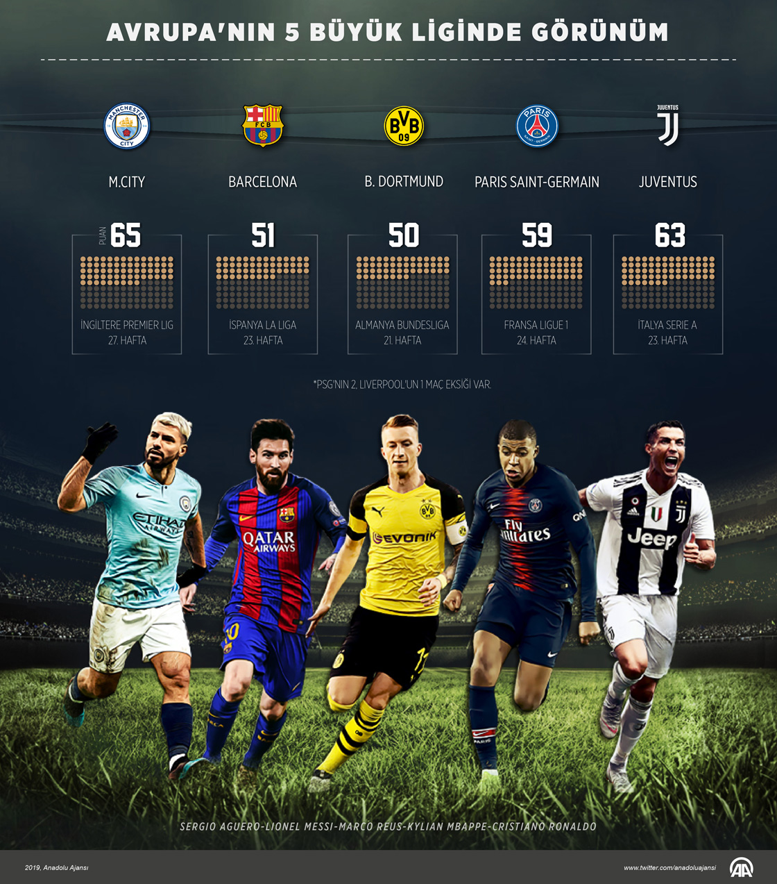Avrupa'nın en büyük 5 futbol ligi kabul edilen İngiltere (Premier Lig), İspanya (La Liga), İtalya (Serie A), Almanya (Bundesliga) ve Fransa'daki (Ligue 1) karşılaşmalara, hafta sonu devam edildi. ( Kemal Delikmen - Anadolu Ajansı )