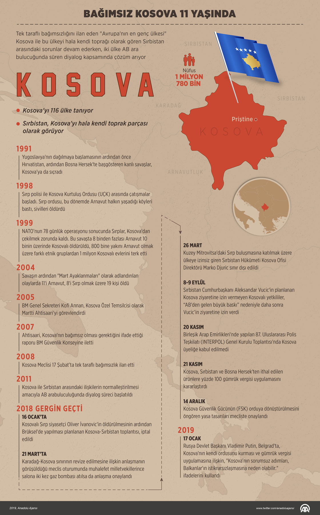 Tek taraflı bağımsızlığını ilan eden "Avrupa'nın en genç ülkesi" Kosova ile bu ülkeyi hala kendi toprağı olarak gören Sırbistan arasındaki sorunlar devam ederken, iki ülke AB ara bulucuğunda süren diyalog kapsamında çözüm arıyor. (Muhammed Ali Yiğit - Anadolu Ajansı)16 Şubat 2019•Güncelleme: 16 Şubat 2019