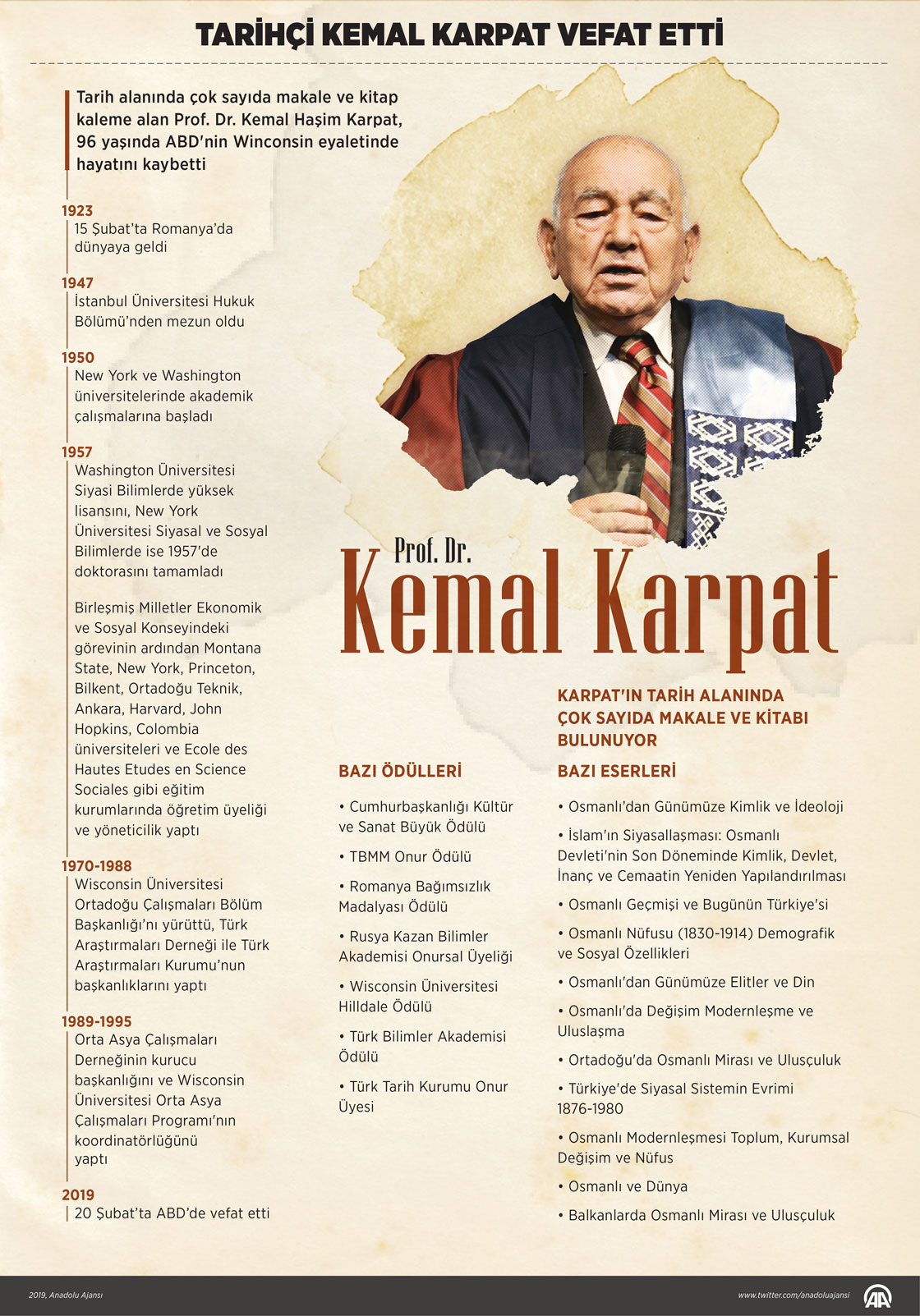 Tarih alanında çok sayıda makale ve kitap kaleme alan Prof. Dr. Kemal Haşim Karpat, 96 yaşında ABD'nin Winconsin eyaletinde hayatını kaybetti. ( Yasin Demirci - Anadolu Ajansı )