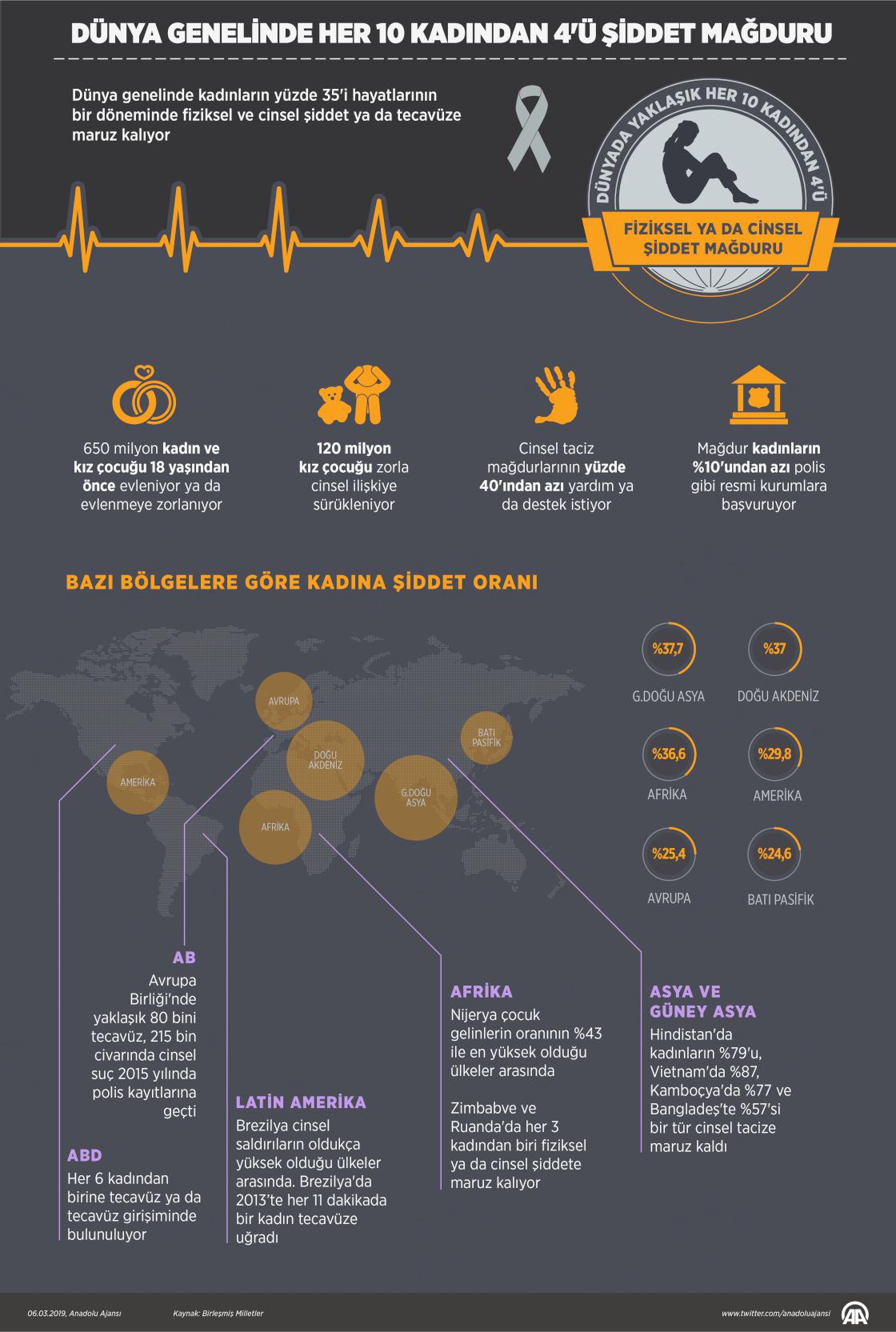 Dünya genelinde kadınların yüzde 35'i hayatlarının bir döneminde fiziksel ve cinsel şiddet ya da tecavüze maruz kalıyor. ( Yasin Demirci - Anadolu Ajansı )