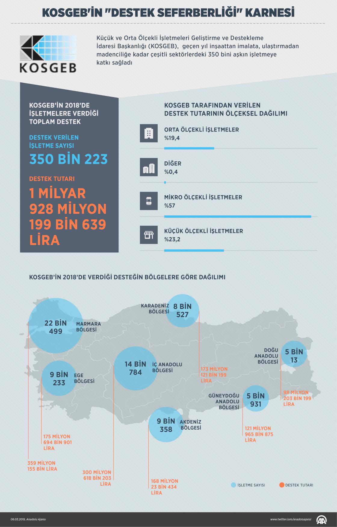 Küçük ve Orta Ölçekli İşletmeleri Geliştirme ve Destekleme İdaresi Başkanlığı (KOSGEB), geçen yıl inşaattan imalata, ulaştırmadan madenciliğe kadar çeşitli sektörlerdeki 350 bini aşkın işletmeye katkı sağladı.