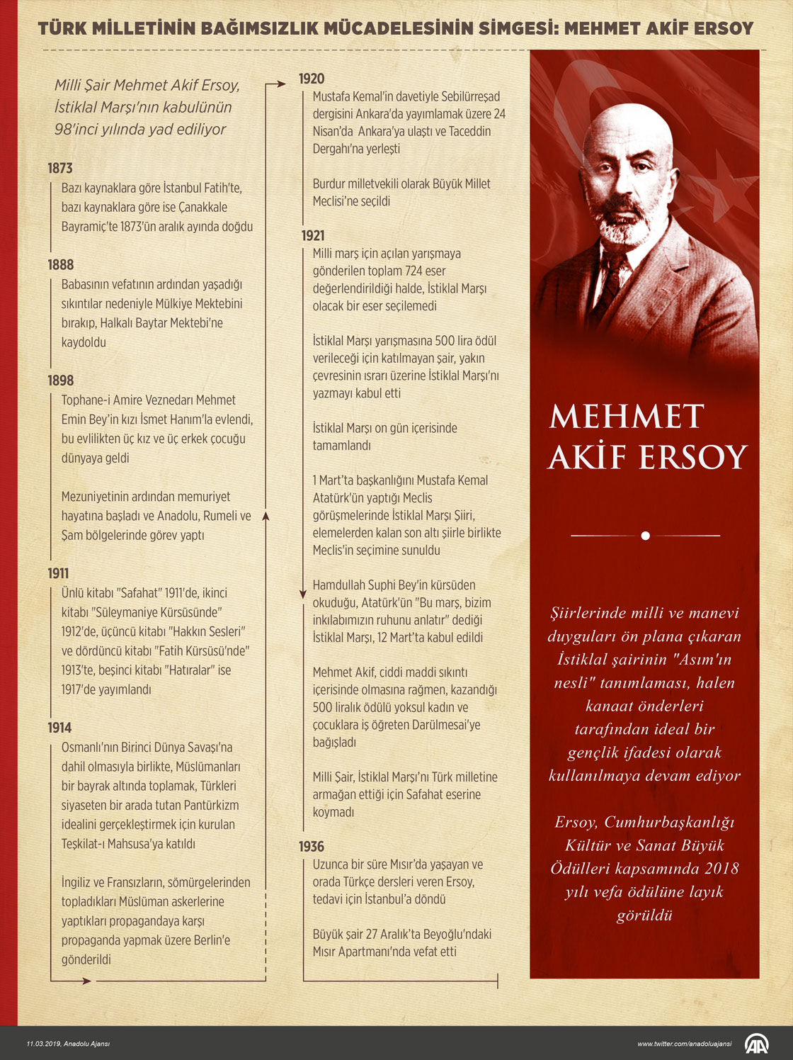 Milli Şair Mehmet Akif Ersoy, İstiklal Marşı'nın kabulünün 98'inci yılında yad ediliyor. ( Kemal Delikmen - Anadolu Ajansı )