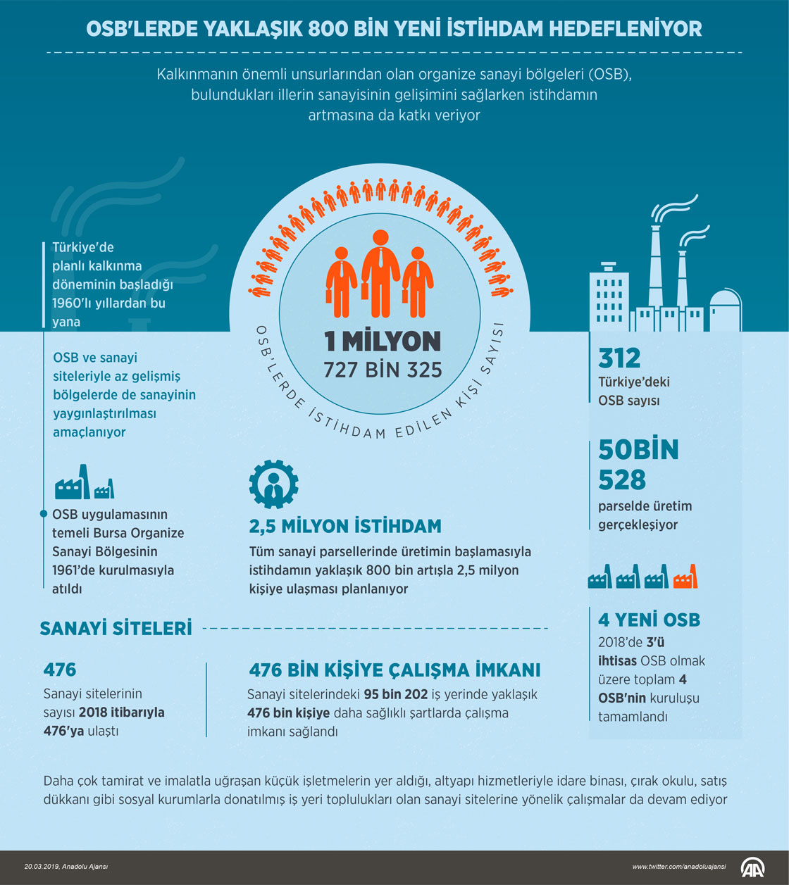 Türkiye genelinde organize sanayi bölgesi (OSB) sayısı 312'ye ulaşırken, tüm sanayi parsellerinde üretime geçilmesiyle istihdamın yaklaşık 800 bin artışla 2,5 milyon kişiye ulaşması planlanıyor. ( Ahmet Burak Özkan - Anadolu Ajansı )