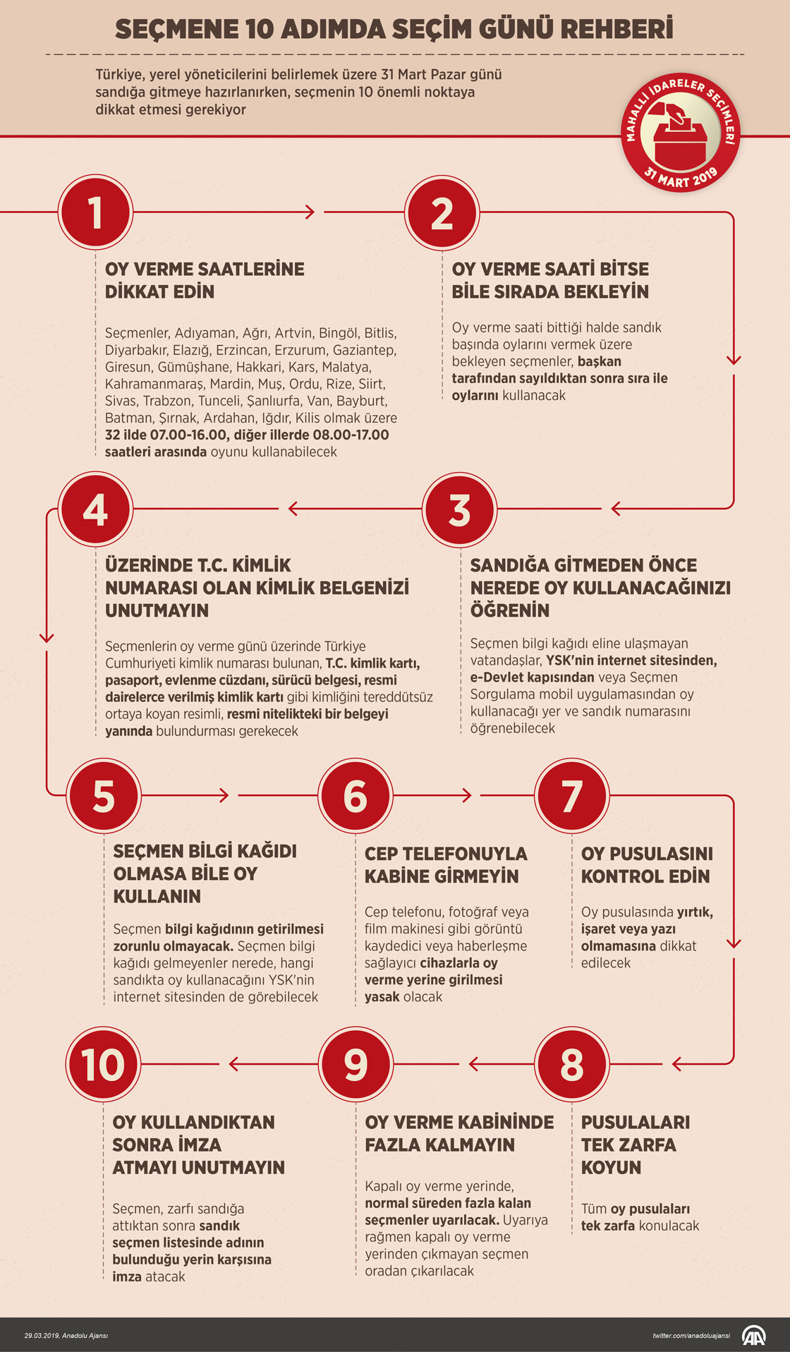 Türkiye, yerel yöneticilerini belirlemek üzere 31 Mart Pazar günü sandığa gitmeye hazırlanırken, seçmenin 10 önemli noktaya dikkat etmesi gerekiyor. ( Yasin Demirci - Anadolu Ajansı )