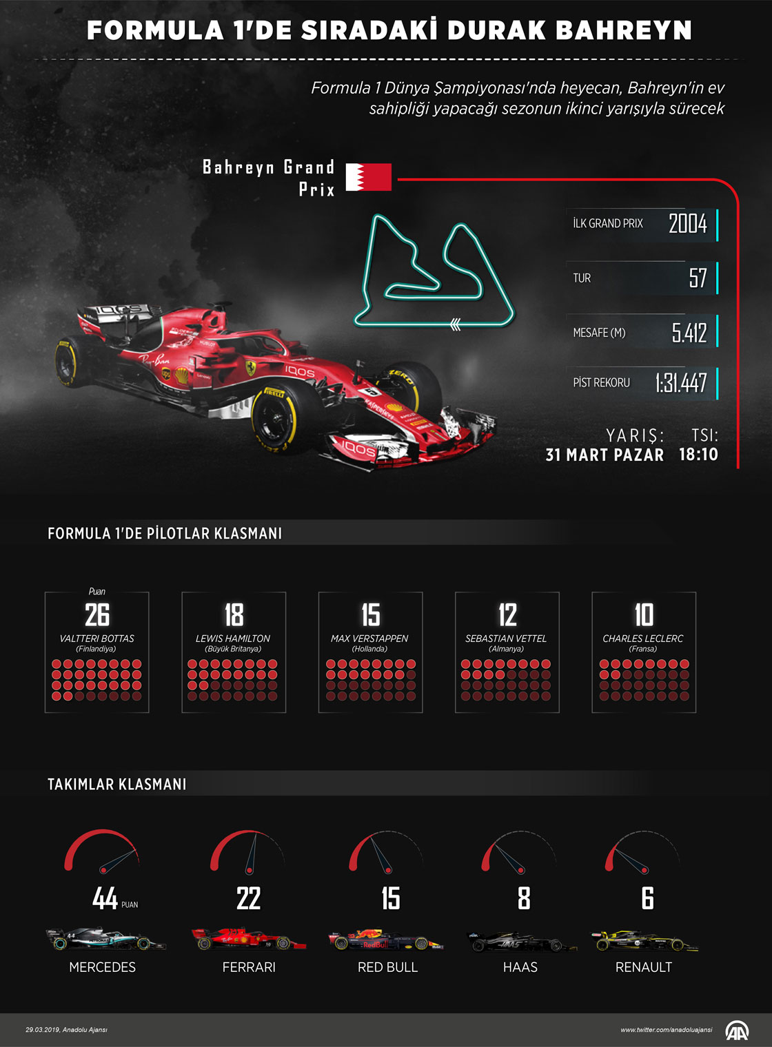 Formula 1 Dünya Şampiyonası'nda heyecan, Bahreyn'in ev sahipliği yapacağı sezonun ikinci yarışıyla sürecek.
