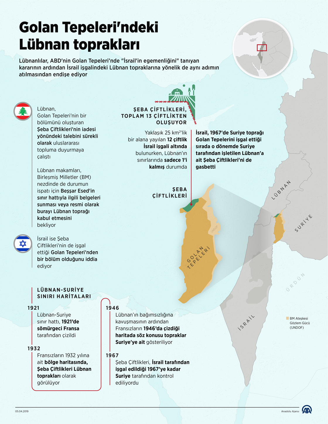 Lübnanlılar, ABD'nin Golan Tepeleri'nde "İsrail'in egemenliğini" tanıyan kararının ardından İsrail işgalindeki Lübnan topraklarına yönelik de aynı adımın atılmasından endişe ediyor.
