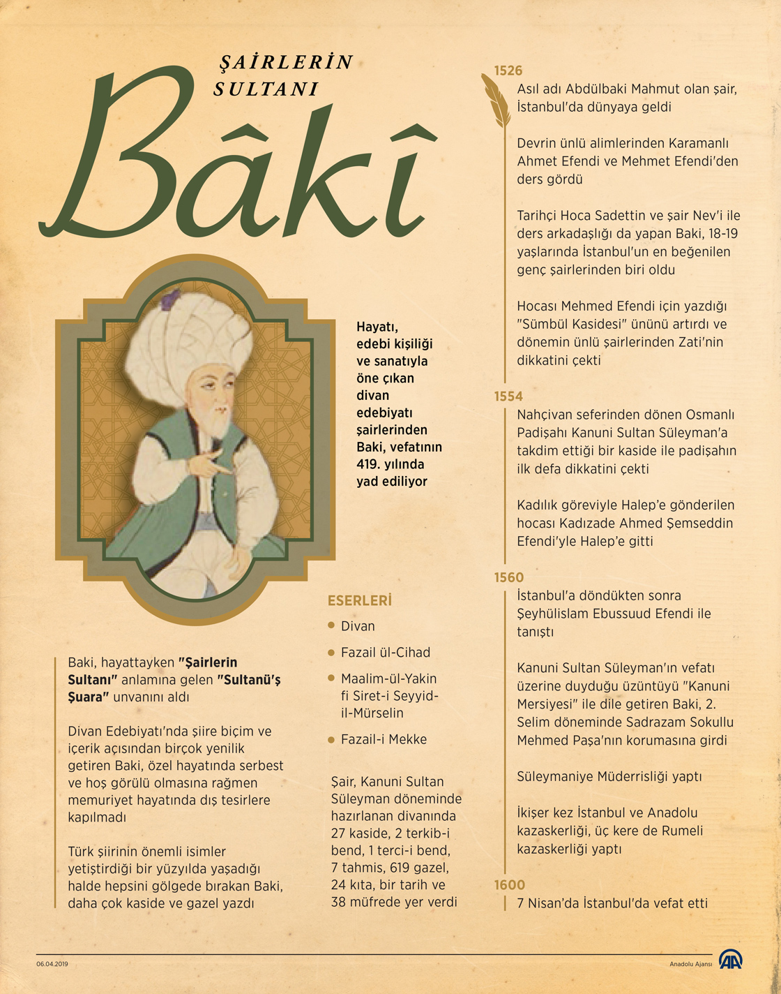 Hayatı, edebi kişiliği ve sanatıyla öne çıkan divan edebiyatı şairlerinden Baki, vefatının 419. yılında yad ediliyor. ( Yasin Demirci - Anadolu Ajansı )