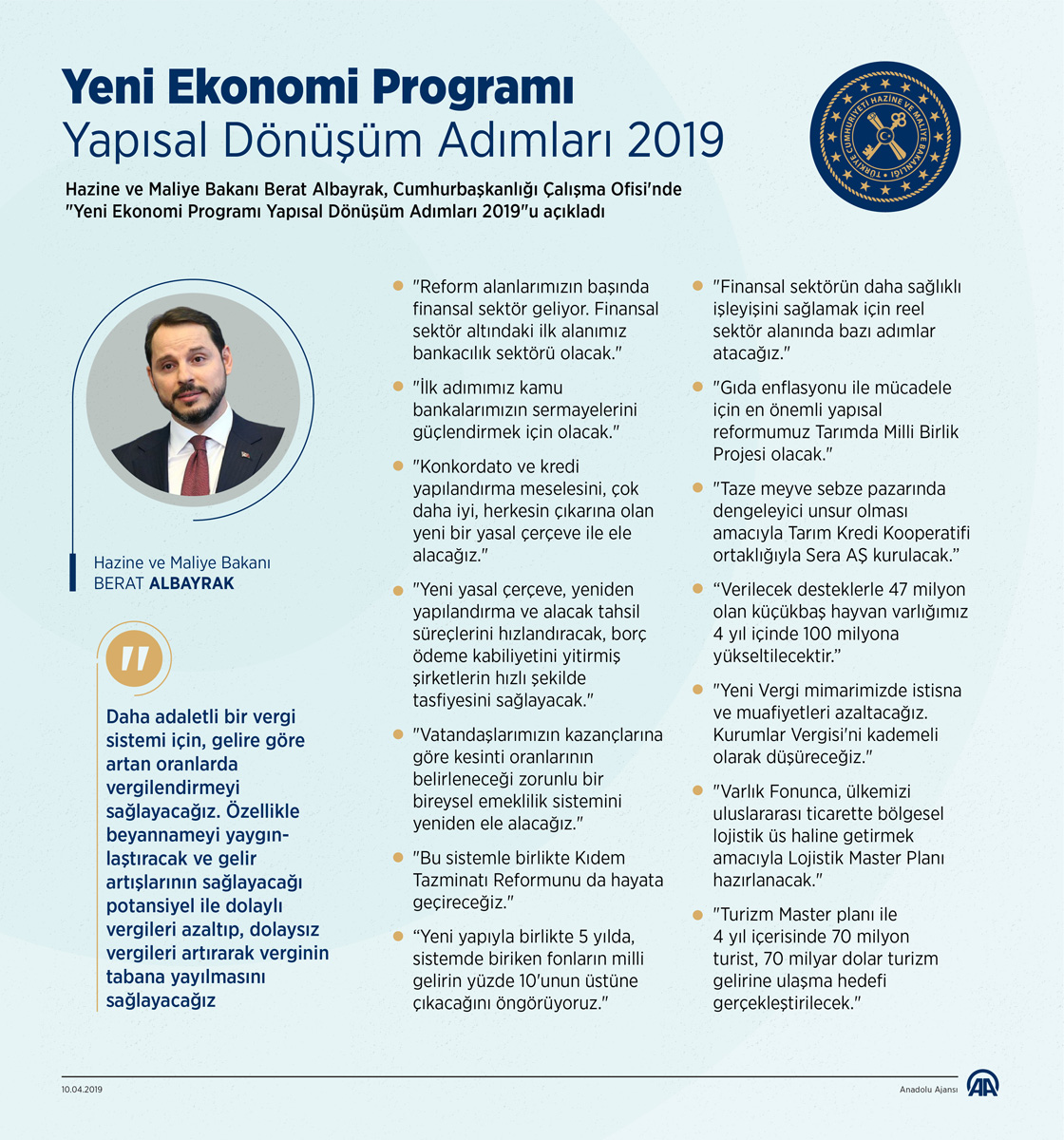 Hazine ve Maliye Bakanı Berat Albayrak, Cumhurbaşkanlığı Çalışma Ofisi'nde "Yeni Ekonomi Programı Yapısal Dönüşüm Adımları 2019"u açıkladı. ( Ahmet Burak Özkan - Anadolu Ajansı )