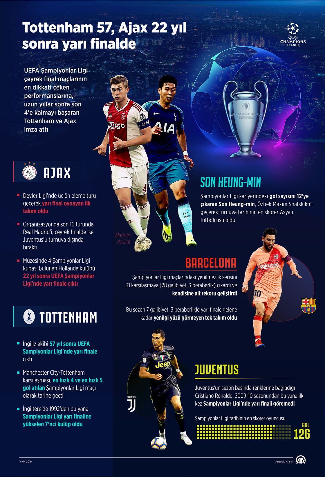 UEFA Şampiyonlar Ligi çeyrek final maçlarının en dikkati çeken performanslarına, uzun yıllar sonra son 4'e kalmayı başaran Tottenham ve Ajax imza attı. ( Kemal Delikmen - Anadolu Ajansı )
