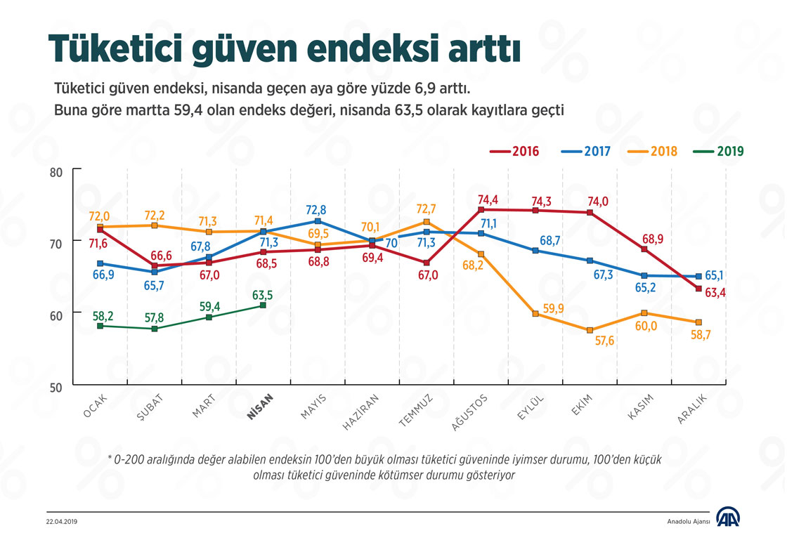 Türkiye İstatistik Kurumu (TÜİK), nisan ayına ilişkin tüketici güven endeksini açıkladı. Tüketici güven endeksi, nisanda geçen aya göre yüzde 6,9 arttı. ( Gözde Gültekinler - Anadolu Ajansı )