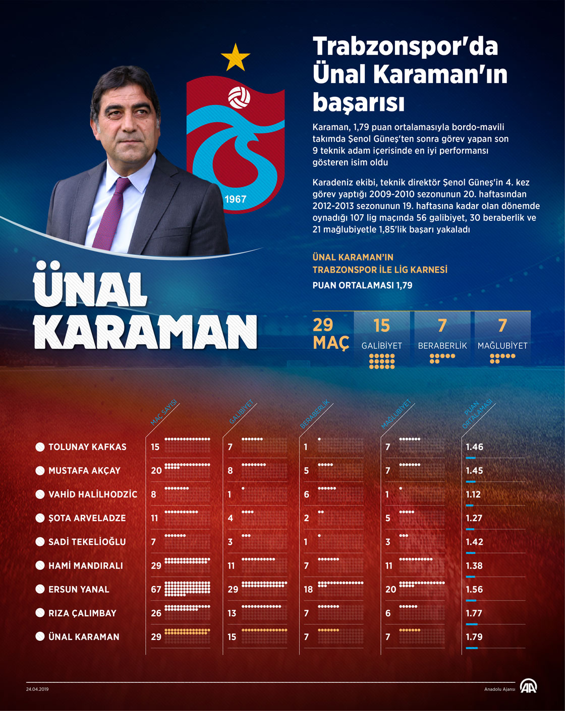 Trabzonspor'da Ünal Karaman'ın başarısı