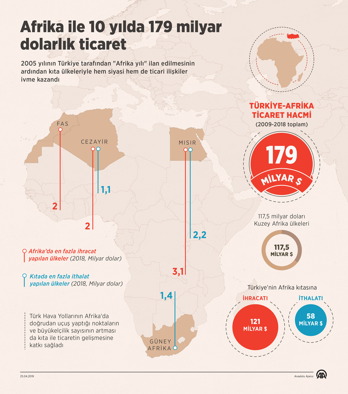 2005 yılının Türkiye tarafından "Afrika yılı" ilan edilmesinin ardından kıta ülkeleriyle hem siyasi hem de ticari ilişkiler ivme kazandı. (Grafik: AA/Murat Usubaliev)