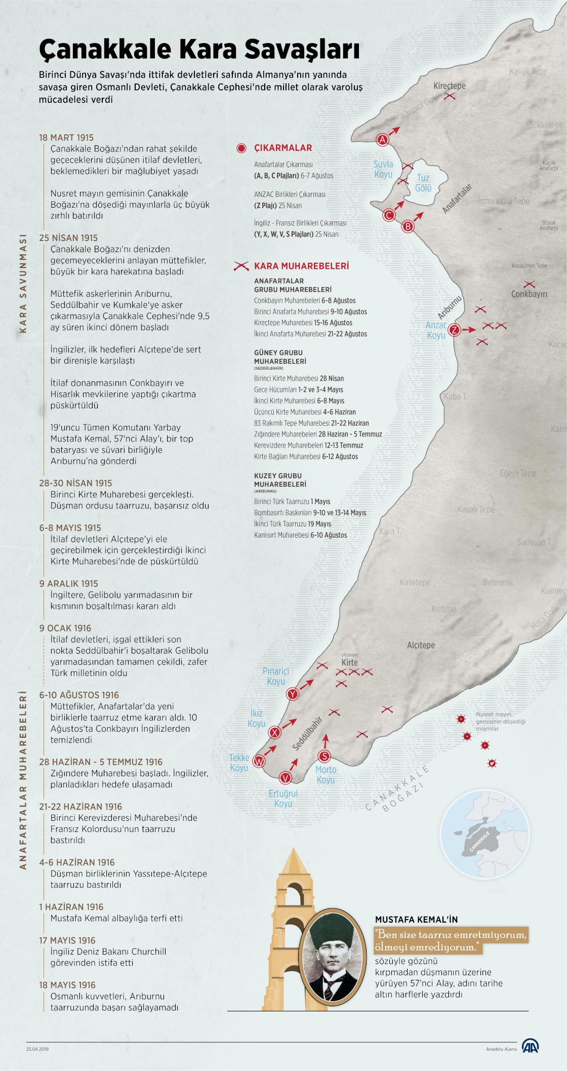 Birinci Dünya Savaşı'nda ittifak devletleri safında Almanya'nın yanında savaşa giren Osmanlı Devleti, Çanakkale Cephesi'nde millet olarak varoluş mücadelesi verdi.