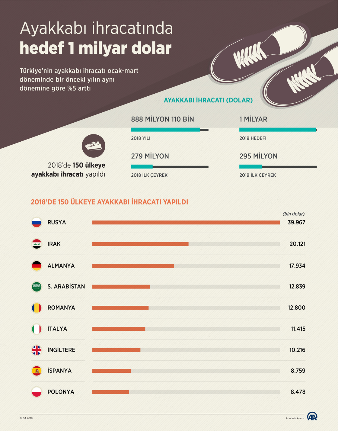 Türkiye'nin ayakkabı ihracatı ocak-mart döneminde bir önceki yılın aynı dönemine göre %5 arttı. ( Muhammed Ali Yiğit - Anadolu Ajansı )