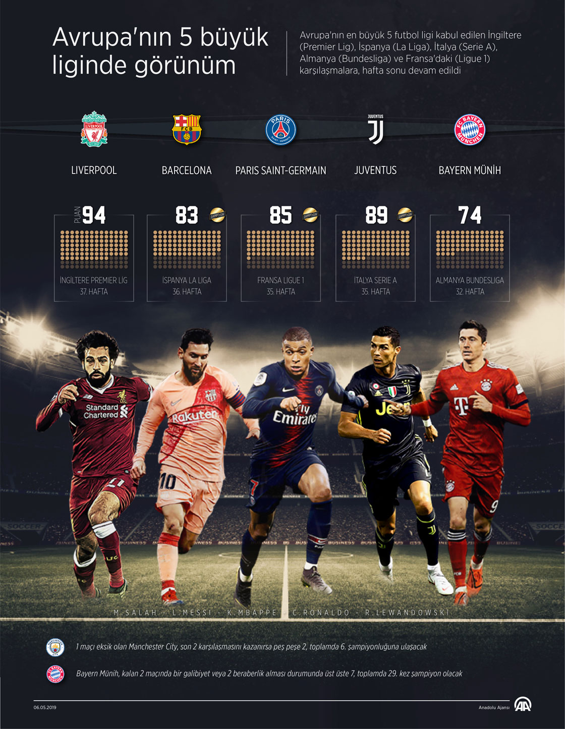 Serie A, Ligue 1 ve La Liga'da şampiyonların belli olduğu Avrupa'nın 5 büyük ligi arasındaki İngiltere Premier Lig ve Bundesliga'da zirve mücadelesi sürüyor. ( Muhammed Ali Yiğit - Anadolu Ajansı )