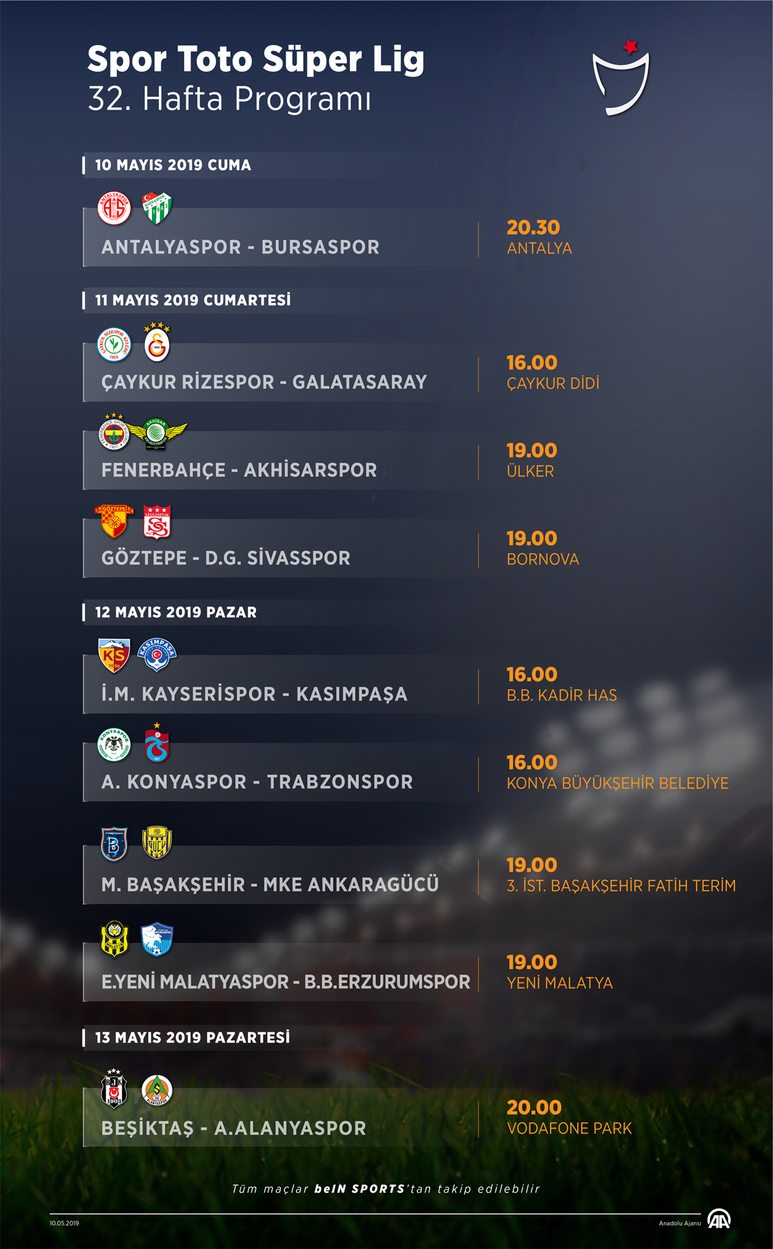 Spor Toto Süper Lig 32. Hafta Programı