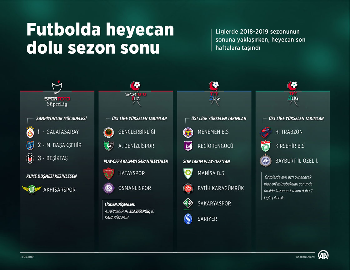 2018-2019 sezonunun sonuna gelirken liglerde şampiyonlar ve küme düşen takımlar büyük oranda belli oldu. ( Muhammed Ali Yiğit - Anadolu Ajansı )