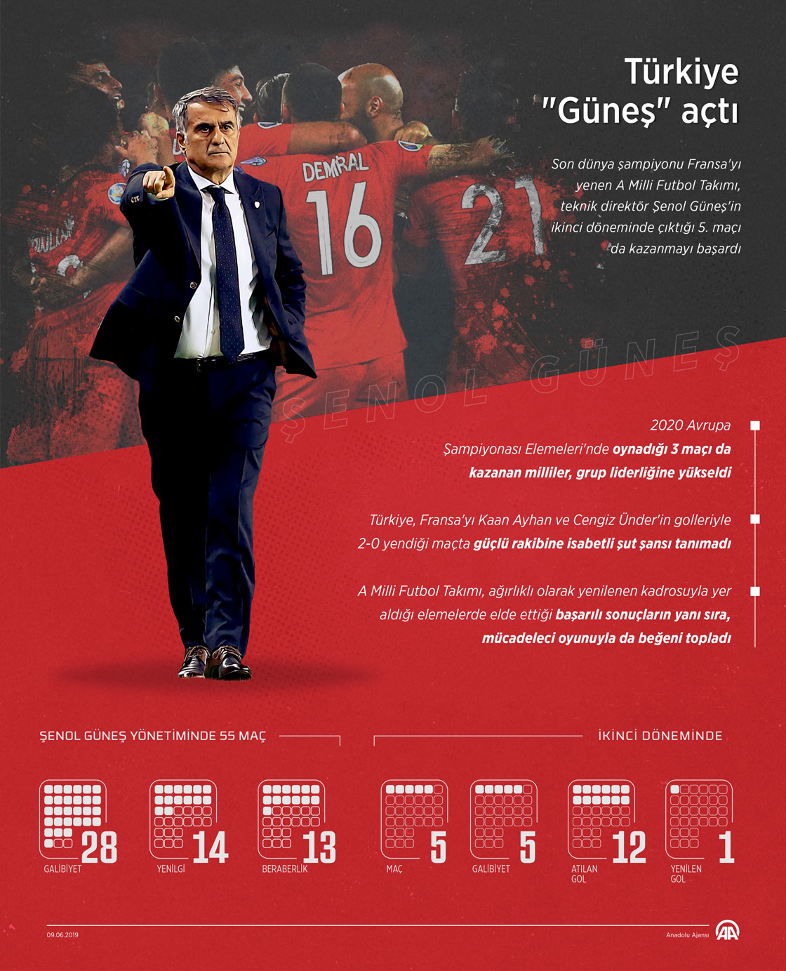 A Milli Futbol Takımı, teknik direktör Şenol Güneş'in ikinci döneminde çıktığı 5. maçı da kazanmayı başardı.
