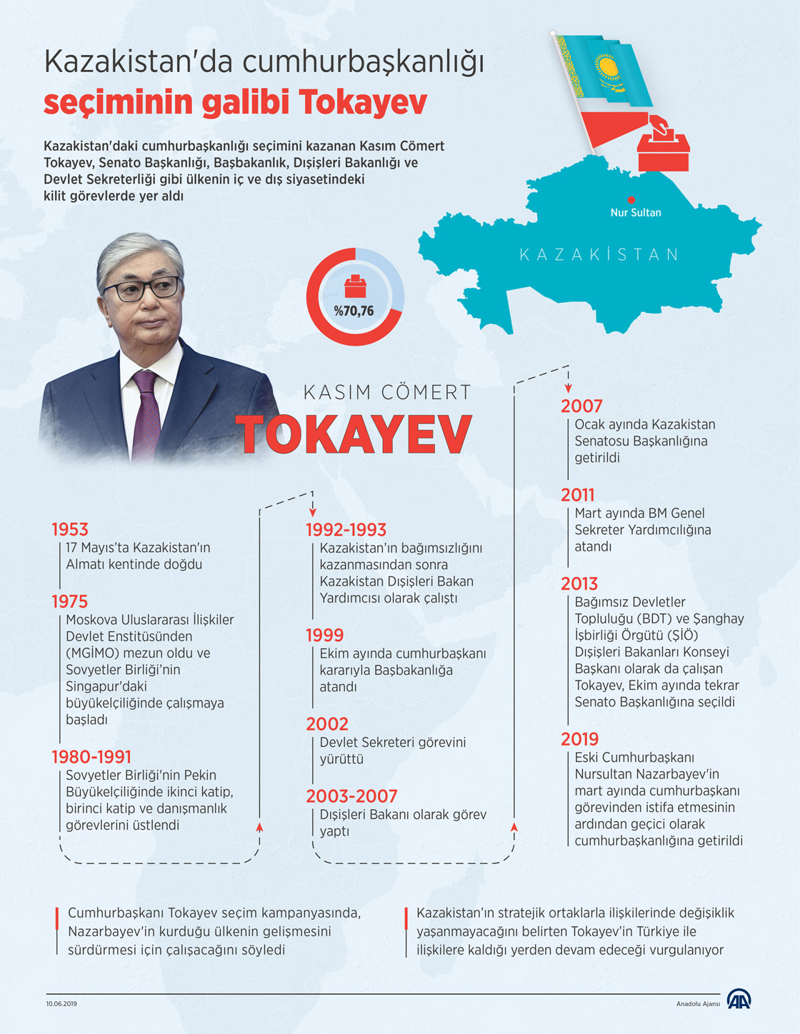 Kazakistan'daki cumhurbaşkanlığı erken seçiminin galibi daha önce devletin farklı kademelerinde görev alan deneyimli diplomat Kasım Cömert Tokayev oldu. ( Muhammed Ali Yiğit - Anadolu Ajansı )