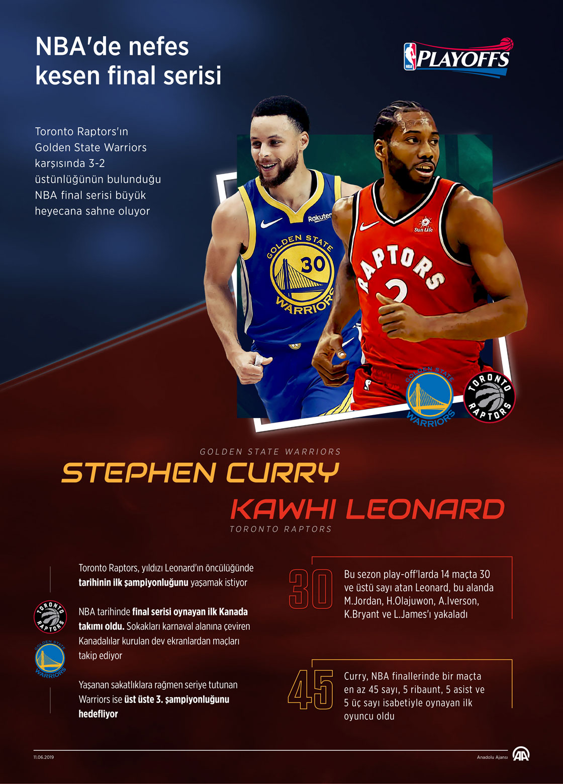 Amerikan Basketbol Ligi'nde (NBA) Golden State Warriors ile Toronto Raptors'ın karşı karşıya geldiği final serisi büyük heyecana sahne oluyor. Bu sezon play-off'larda 14 maçta 30 ve üstü sayı atan Leonard, bu alanda Michael Jordan, Hakeem Olajuwon, Allen Iverson, Kobe Bryant ve LeBron James'ı yakaladı.