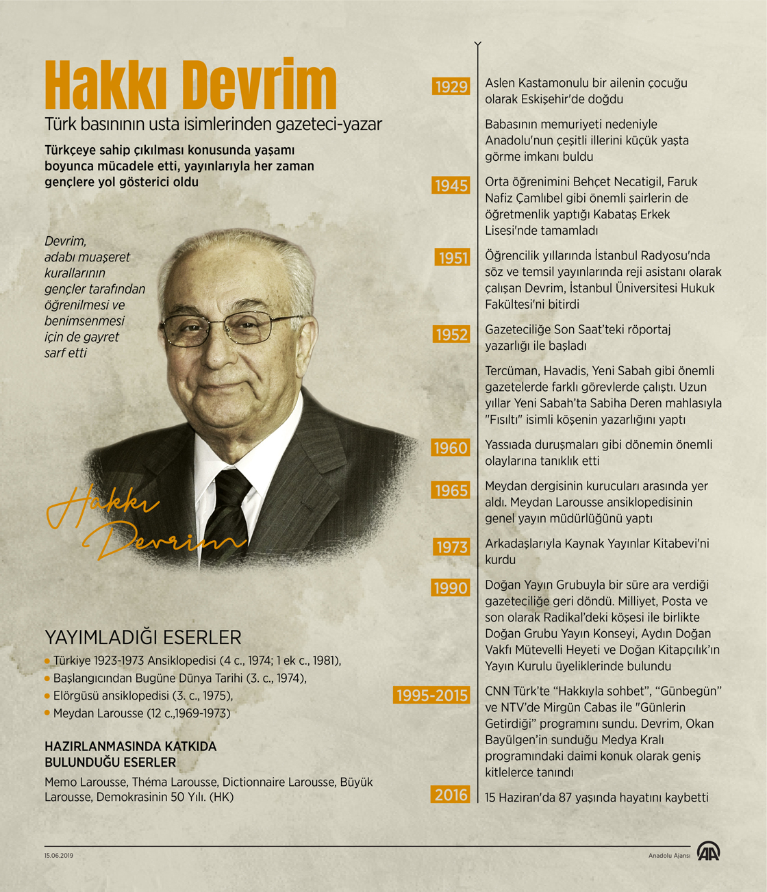 Türk basınının öncülerinden gazeteci Hakkı Devrim'in vefatının üzerinden 3 yıl geçti. Türkçeye sahip çıkılması konusunda yaşamı boyunca mücadele eden Hakkı Devrim, yayınlarıyla her zaman gençlere yol gösterici oldu.