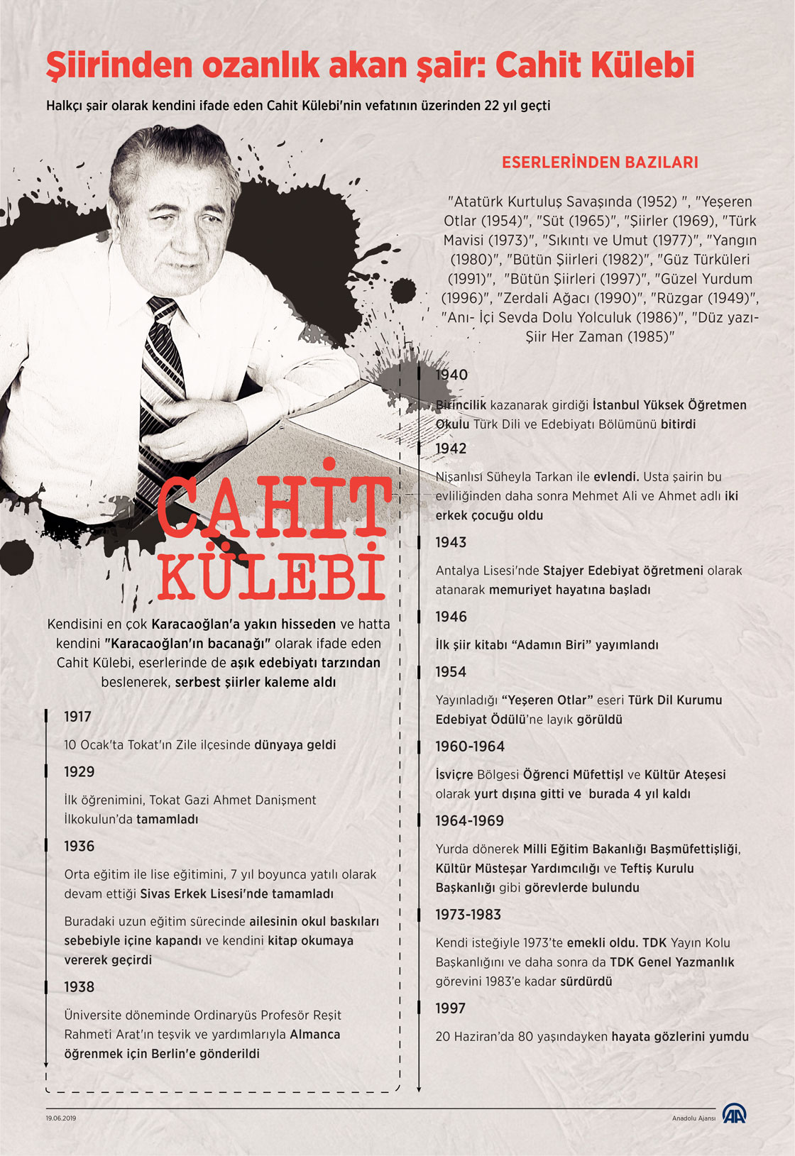 Halkçı şair olarak kendini ifade eden Cahit Külebi'nin vefatının üzerinden 22 yıl geçti. ( Mahmut Resul Karaca - Anadolu Ajansı )
