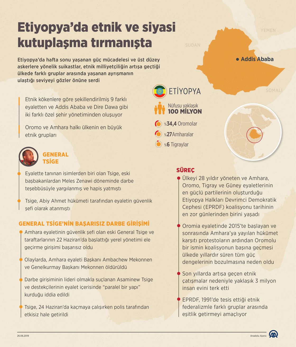 Etiyopya’da hafta sonu yaşanan güç mücadelesi ve üst düzey askerlere yönelik suikastlar, etnik milliyetçiliğin artışa geçtiği ülkede farklı gruplar arasında yaşanan ayrışmanın ulaştığı seviyeyi gözler önüne serdi.