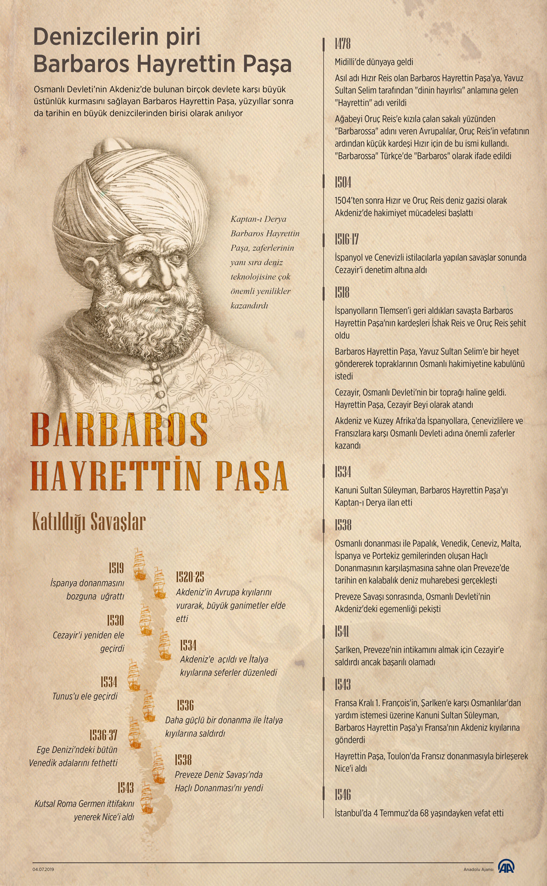 Osmanlı Devleti'nin Akdeniz'de bulunan birçok devlete karşı büyük üstünlük kurmasını sağlayan Barbaros Hayrettin Paşa, yüzyıllar sonra da tarihin en büyük denizcilerinden birisi olarak anılıyor.