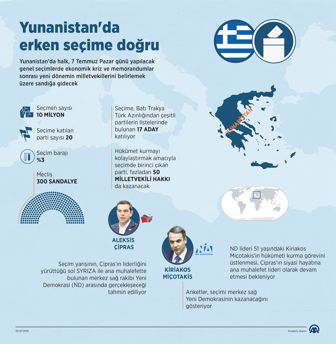 Yunanistan'da halk, 7 Temmuz Pazar günü yapılacak genel seçimlerde ekonomik kriz ve memorandumlar sonrası yeni dönemin milletvekillerini belirlemek üzere sandığa gidecek.